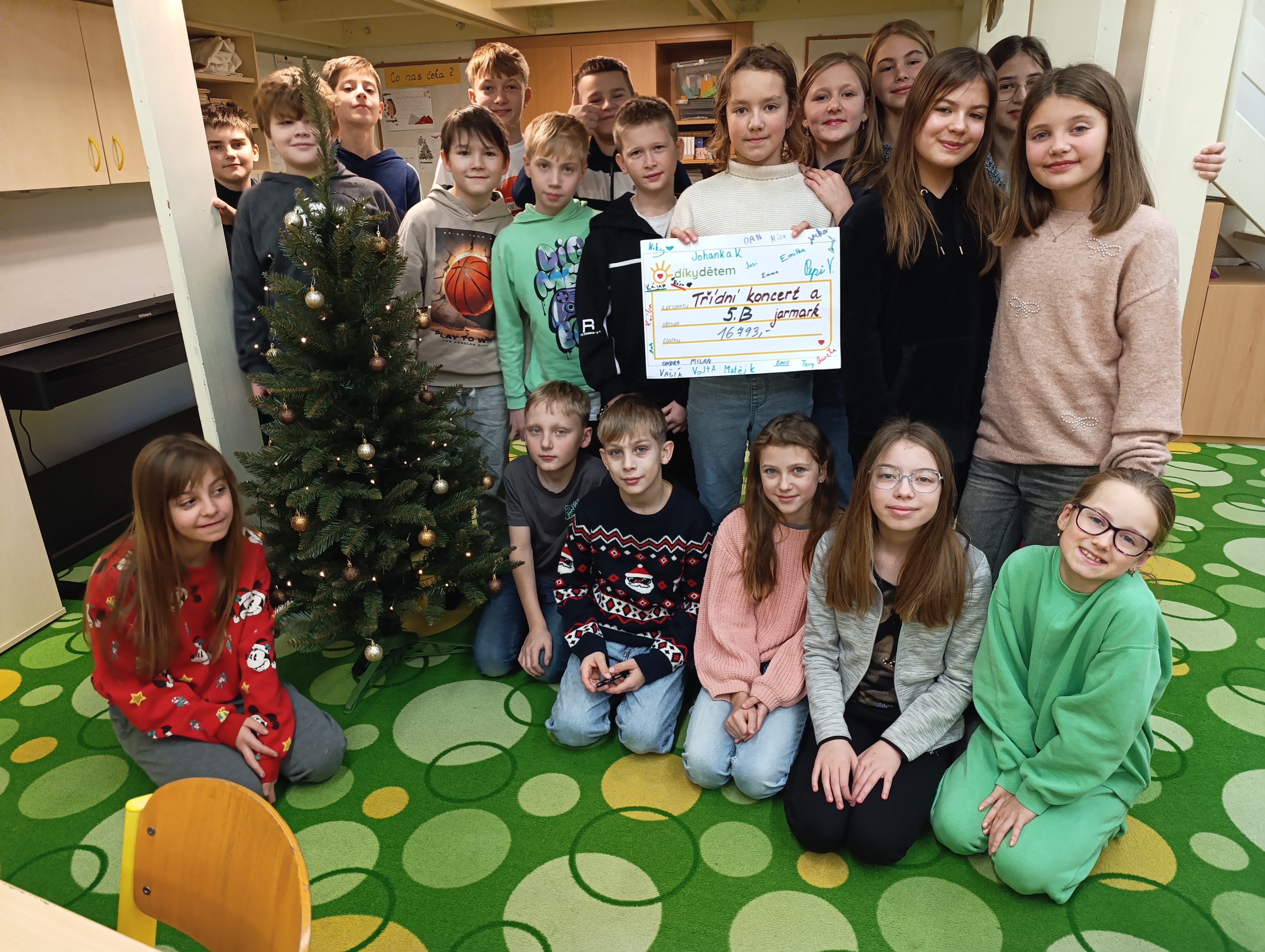 Stejně jako v loňském školním roce i letos připravila 5. B koncert spojený s prodejem vlastních výrobků pro projekt „Díky dětem“. Na závěr akce se všichni dozvěděli od ředitelky Nadace 700 let města Plzně paní Aleny Kozákové konečnou částku, kterou 5. B letos vybrala na pomoc zdravotně i sociálně handicapovaným dětem z Plzně - bylo vybráno neuvěřitelných 16 793 Kč. Částka ještě vzrostla doprodejem výrobků další den ve škole na konečných 18 941 Kč. Všichni si akci užili a všem dárcům moc děkují.